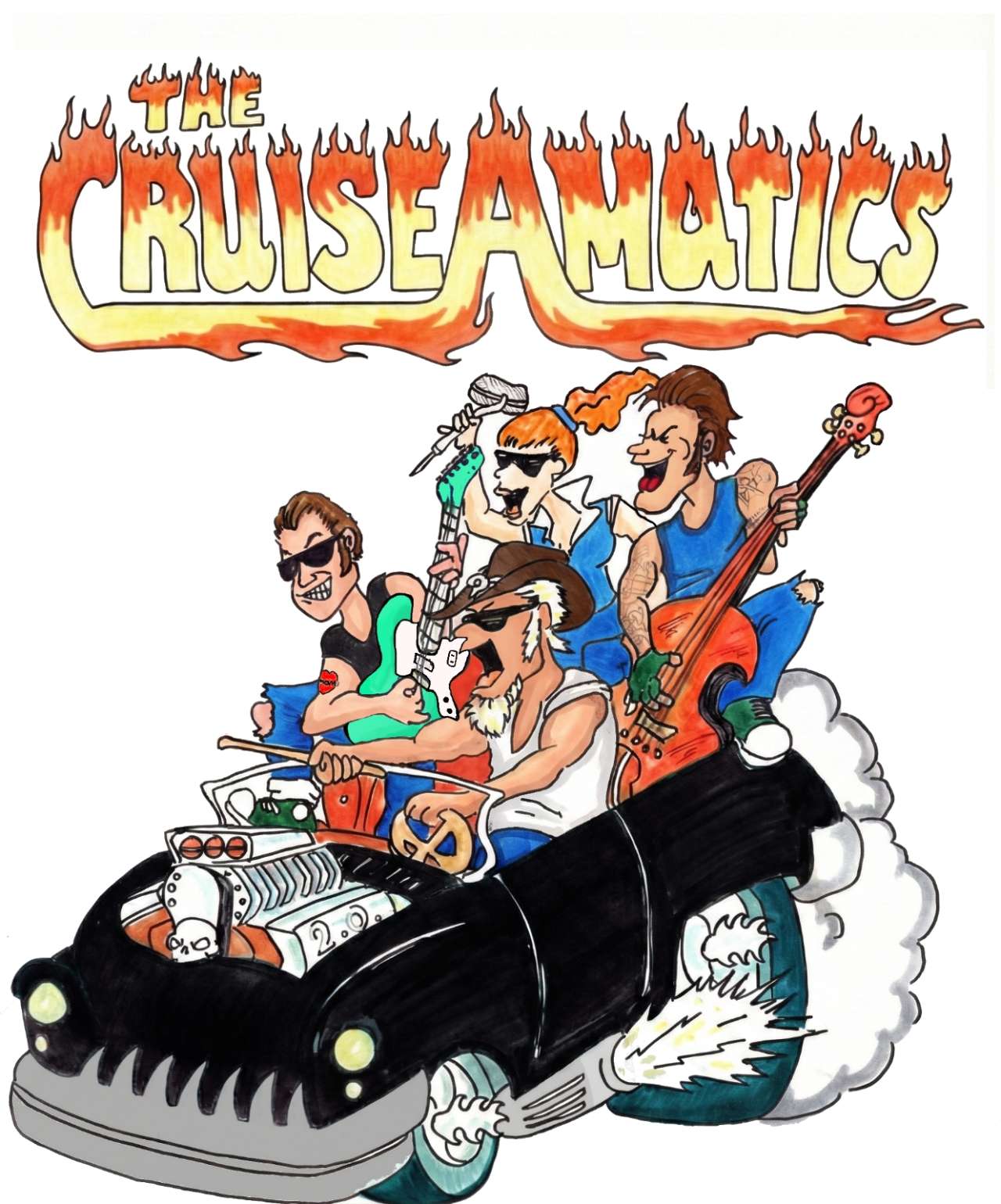 The Cruise-A-matics mix it up with Rockabilly/ Rock n Roll/ Honky Tonk/ Surf/ Garage. The band is fronted by Cheryl Moritz, Branden Weghofer on guitar, Rick Kuebler on bass, Carl Ehst on drums.